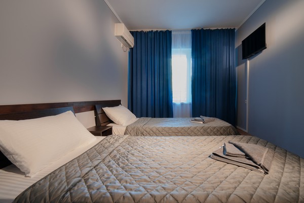 В номере есть все необходимое – холодильник, телевизор, кондиционер для жарких дней, необходимая мебель.